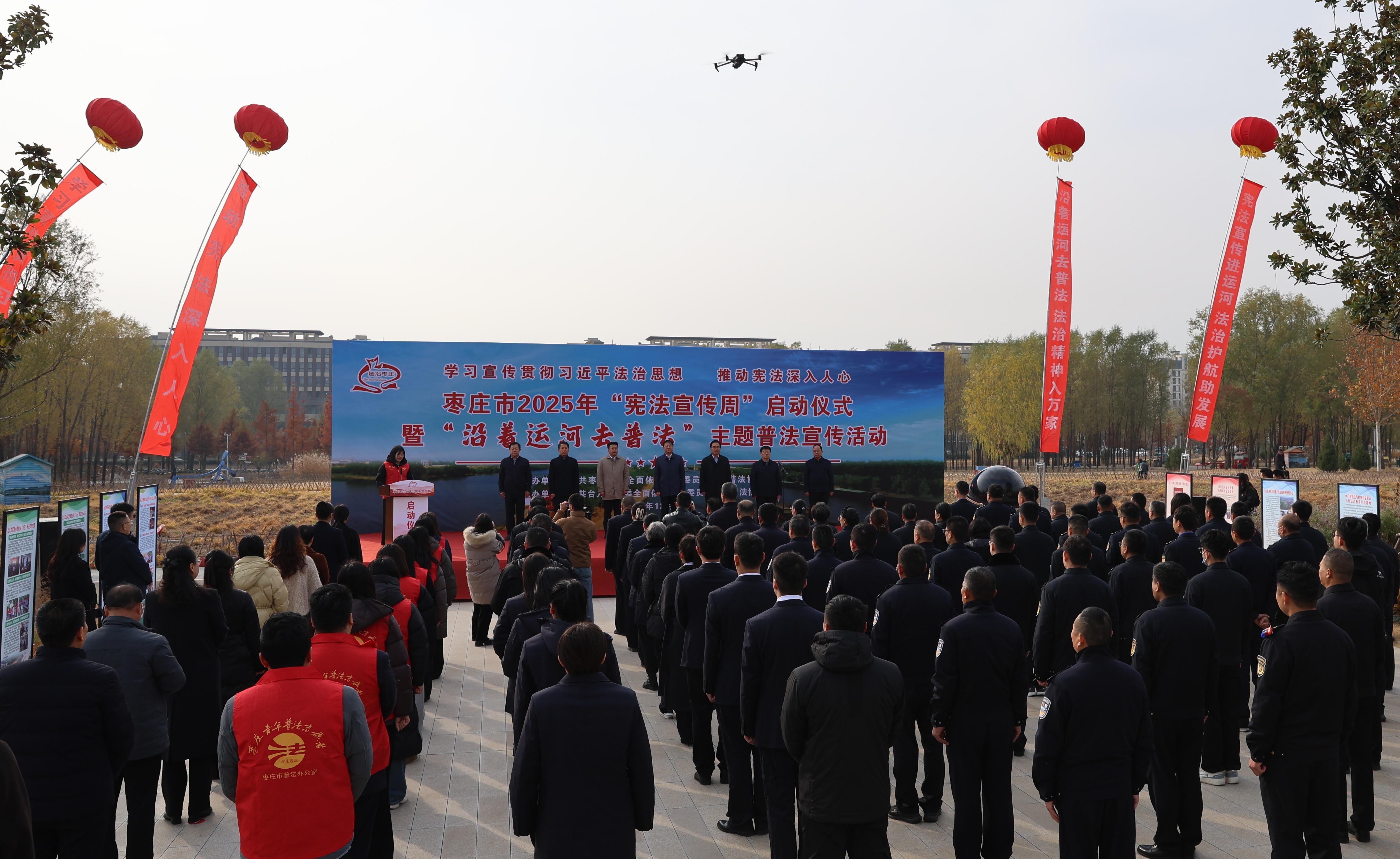 12月2日上午,在第12個國家憲法日即將到來之際,棗莊市2025年“憲法宣傳周”啟動儀式暨“沿著運河去普法”主題普法宣傳活動在臺兒莊憲法廣場舉行。市委常委、宣傳部部長、統(tǒng)戰(zhàn)部部長陳永生,市人大常委會副主任孫恒,市司法局黨組書記、局長孫守春等出席活動,臺兒莊區(qū)委副書記、區(qū)長李軍致辭,市、區(qū)兩級人大代表和政協(xié)委員、“誰執(zhí)法誰普法”相關(guān)單位人員、普法志愿者及媒體代表共同參與。