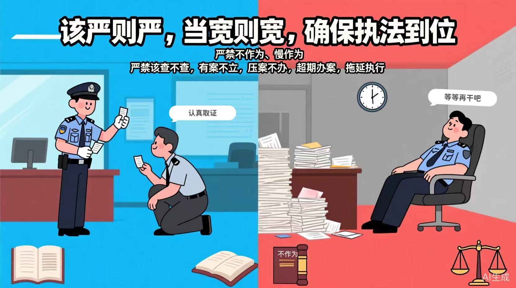 該嚴(yán)則嚴(yán),當(dāng)寬則寬,確保執(zhí)法到位。嚴(yán)禁不作為、慢作為。嚴(yán)禁該查不查、有案不立、壓案不辦、超期辦案、拖延執(zhí)行。