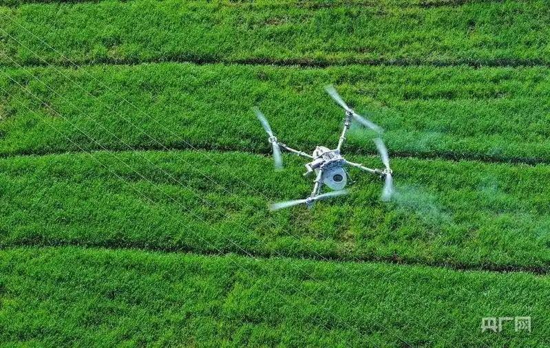 種糧大戶張?zhí)喜倏責(zé)o人機(jī)施肥,促進(jìn)小麥生長。(央廣網(wǎng)發(fā) 蜀山區(qū)委宣傳部供圖)