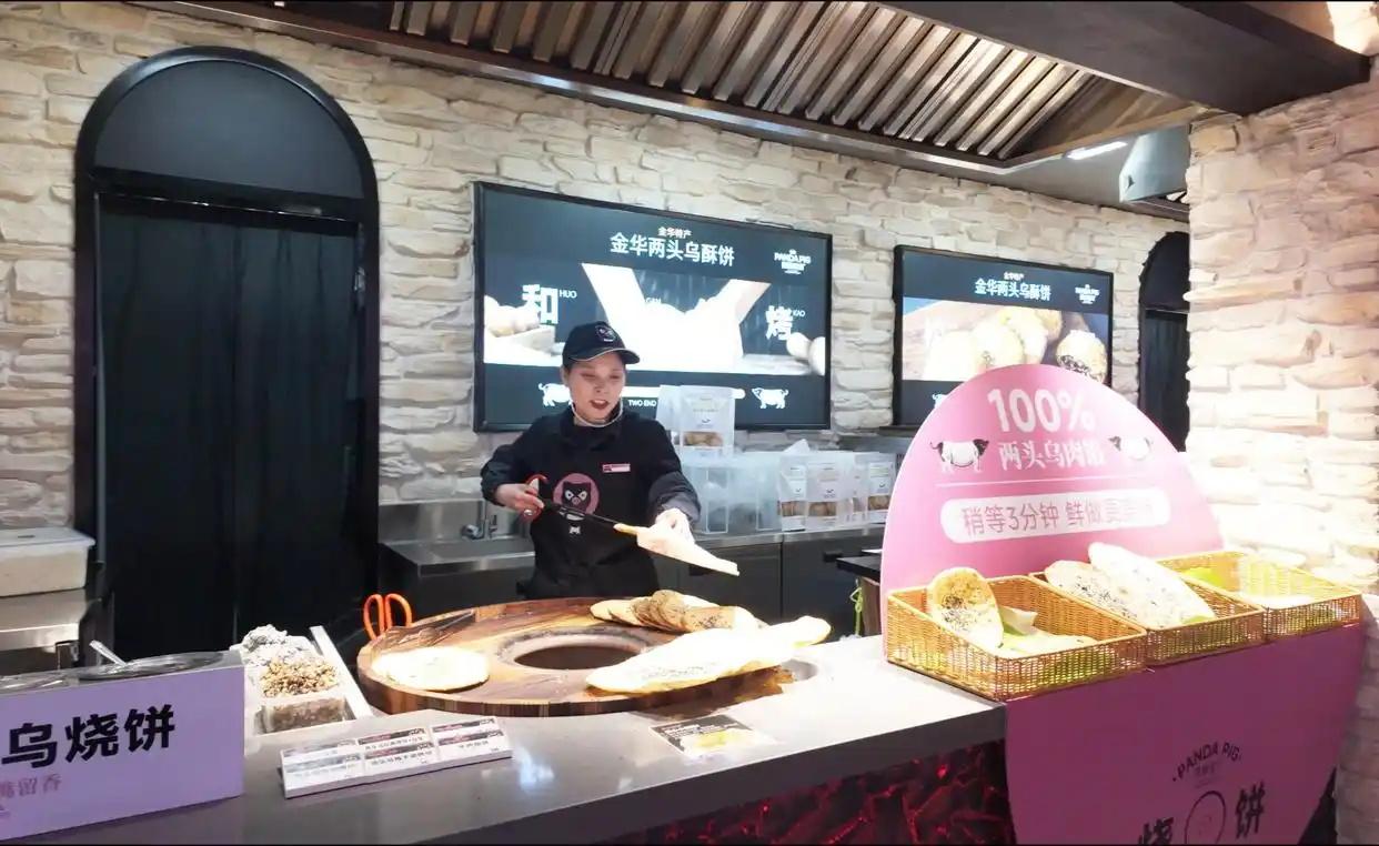 而在金華服務(wù)區(qū),這一理念更為具象。通過將農(nóng)產(chǎn)品與地域文化、旅游體驗深度綁定,這里將簡單的“買特產(chǎn)”升級為沉浸式的“逛展銷”。金華服務(wù)區(qū)聚焦金華兩頭烏這一全國農(nóng)產(chǎn)品地理標(biāo)志,將整個空間打造成以“熊貓豬豬”為主題的“樂園”。