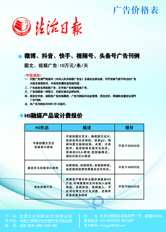 法治日?qǐng)?bào)新媒體廣告價(jià)格表