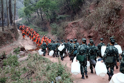 武警涼山支隊(duì)300名官兵徒步上山,攜帶風(fēng)力滅火機(jī)、二號工具和水袋等滅火裝備前往馬道百花深溝,明火已被撲滅,但仍有100多處煙點(diǎn),極易產(chǎn)生復(fù)燃。為防范局地較強(qiáng)陣風(fēng)對撲火工作的影響,官兵加強(qiáng)防護(hù)警戒,在確保自身絕對安全的情況下全面清理煙點(diǎn)。截止4月1日下午3點(diǎn),共清理火場860余畝,處理煙點(diǎn)和零星火點(diǎn)110余個,排查和清理工作仍在進(jìn)行中。