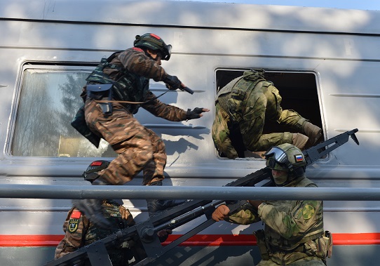 本次聯(lián)演為期11天,以聯(lián)合打擊恐怖主義為主題,按照“實戰(zhàn)化、對抗化、基地化”的思路,區(qū)分聯(lián)合基礎訓練、戰(zhàn)術協(xié)同訓練、綜合對抗演練3個階段,在俄羅斯新西伯利亞市近郊的“戈爾內(nèi)”訓練中心及周邊地域展開4大類近30個課目的訓練和交流。中國武警部隊和俄國民衛(wèi)隊分別派出獵鷹突擊隊和“葉爾馬克”獨立特種作戰(zhàn)部隊參加。
