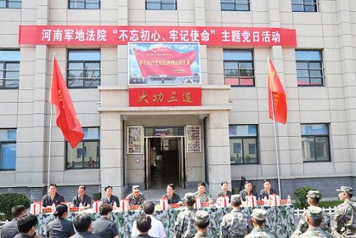 圖為鄭州軍事法院聯(lián)合地方法院在“大功三連”開(kāi)展“不忘初心、牢記使命”主題黨日活動(dòng)。