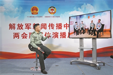本報(bào)記者孫興維通過視頻連線方式采訪軍隊(duì)人大代表。本報(bào)記者 范顯海 攝