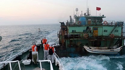 圖為海警執(zhí)法艦艇發(fā)現(xiàn)嫌疑船舶。中國(guó)海警局供圖