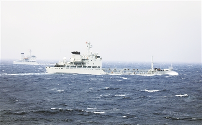 隆冬,海軍某勤務船大隊組織艦艇編隊開展多科目訓練。