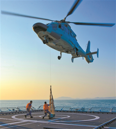 艦載直升機實施垂直補給。