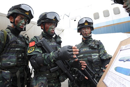 扮演歹徒的藍軍不按套路出牌,將飛機艙門用鐵絲鎖死,突擊隊員從艙外拉拽幾次無法突入。此時,身為現(xiàn)場指揮員的彭星果斷下令,改用突擊車掛鎖拖拽、強行破門,兵分三路突入艙內(nèi)。當槍聲突然從身后響起時,藍軍被打了個措手不及,6名“歹徒”全部被“擊斃”。