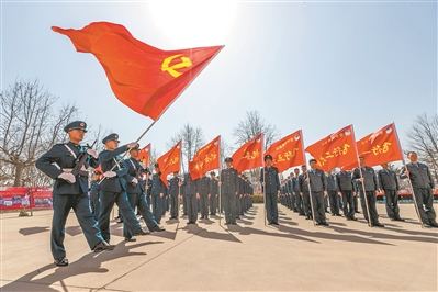 3月23日,北部戰(zhàn)區(qū)空軍舉行黨史學(xué)習(xí)教育啟動(dòng)儀式,引導(dǎo)官兵用黨旗指引航向,培塑優(yōu)良作風(fēng)、錘煉勝戰(zhàn)本領(lǐng)。楊盼 攝