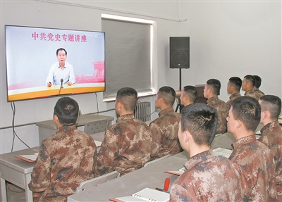 3月25日,戰(zhàn)略支援部隊(duì)某部組織官兵觀看中央黨校黨史學(xué)習(xí)輔導(dǎo)網(wǎng)絡(luò)課程。劉葆旭 攝