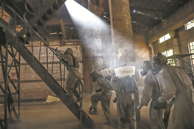 “3名‘暴恐分子’藏匿于化工廠二樓!”晨曦微露,偵察隊(duì)員段鳳喬一邊報(bào)告?zhèn)刹烨闆r,一邊掩護(hù)防化分隊(duì)?wèi)?zhàn)友對(duì)廠區(qū)泄漏化學(xué)物質(zhì)進(jìn)行處理。