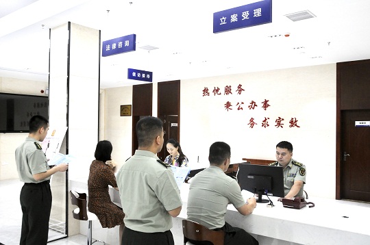 圖為法律援助律師在長沙軍事法院訴訟服務中心值班接待軍人軍屬。(長沙軍事法院供圖)