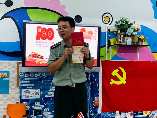 本報(bào)訊 通訊員鄭刃 七一前夕,??谲娛路ㄔ簯?yīng)邀到武警海南總隊(duì)幼兒園開(kāi)展“童心向黨、陽(yáng)光成長(zhǎng)”黨史教育主題活動(dòng)。