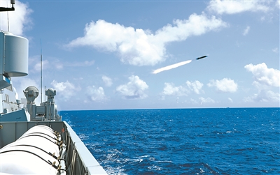 緊隨其后,各艦副炮系統(tǒng)對“敵”目標實施補充打擊。海上“敵”情剛剛消除,空中威脅又不期而至。判別來襲目標后,各艦立即發(fā)射干擾彈,同時進行戰(zhàn)術機動,成功規(guī)避來襲導彈。