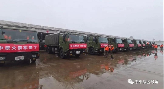 21日上午,根據(jù)中部戰(zhàn)區(qū)命令,駐豫火箭軍某部派出200名官兵,攜帶12艘皮劃艇、1000多件救生衣、500多個鍬和鎬等必要救生器材,奔赴鄭州市。