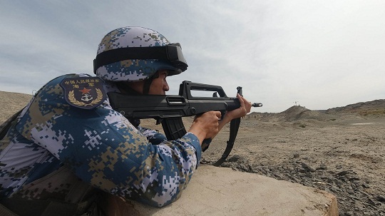 圖為“晴空”項目參賽隊員進行自動步槍對隱顯目標射擊。徐翥 攝