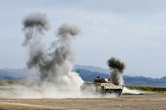 圖為中國參賽隊陸軍代表隊對步戰(zhàn)車目標(biāo)進行實彈射擊。王俊 攝