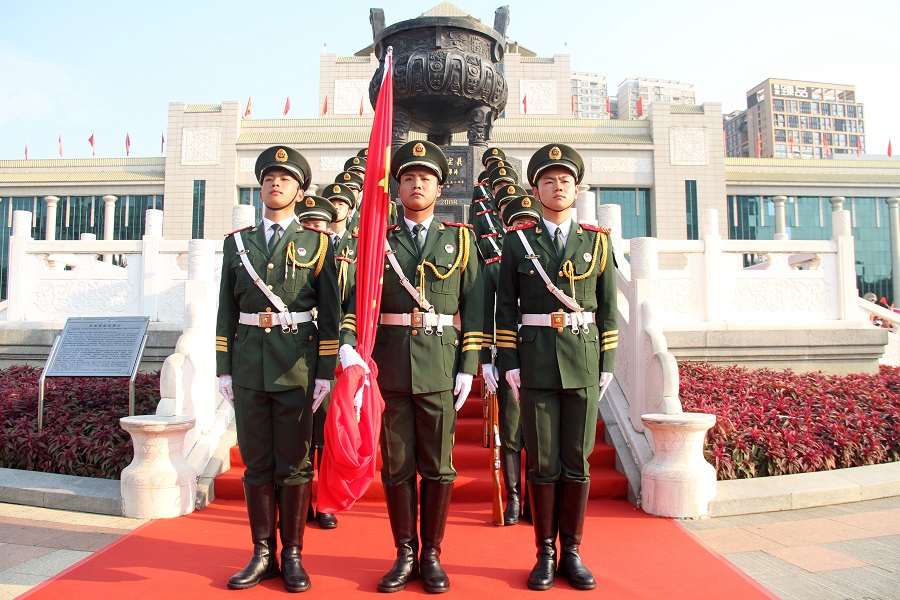 10月1日,在廣西壯族自治區(qū)南寧市,不少市民一大早就趕到民族廣場觀看升旗儀式,由武警廣西總隊南寧支隊15名官兵組成的國旗護(hù)衛(wèi)隊圓滿完成升旗任務(wù)。