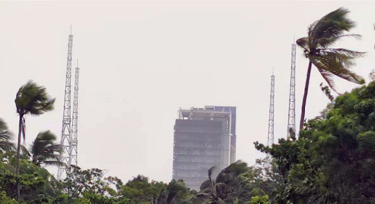 據(jù)悉,早在臺(tái)風(fēng)“獅子山”來(lái)臨前,發(fā)射場(chǎng)科技人員就開(kāi)展專題討論,制定應(yīng)急預(yù)案,組織各系統(tǒng)崗位落實(shí)設(shè)備設(shè)施防臺(tái)風(fēng)措施,對(duì)室外設(shè)備進(jìn)行加固,加班加點(diǎn),提前完成了發(fā)射塔架回轉(zhuǎn)平臺(tái)打開(kāi)、長(zhǎng)征七號(hào)活動(dòng)平臺(tái)進(jìn)入垂直總裝測(cè)試廠房避風(fēng)等大項(xiàng)工作,有效保證了臺(tái)風(fēng)期間發(fā)射塔架和活動(dòng)平臺(tái)的安全。