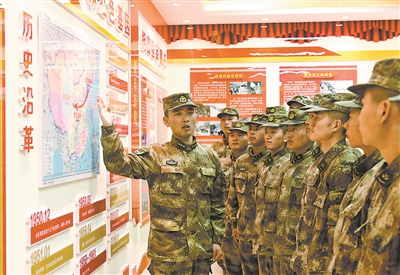 連隊榮譽室內(nèi),官兵聆聽光榮歷史,傳承紅色血脈。