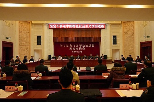 圖為國防大學(xué)政治學(xué)院西安校區(qū)召開學(xué)習(xí)貫徹習(xí)近平法治思想理論座談會。冉慶 攝
