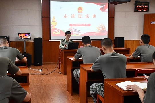 警通勤務(wù)連正在進(jìn)行一場普法宣講,一堂課下來,戰(zhàn)士小李深有感觸地說:“家里的難題沒了,自己的心結(jié)也打開了。”此次的宣講“專家”,是西安校區(qū)2019級碩士研究生小齊。