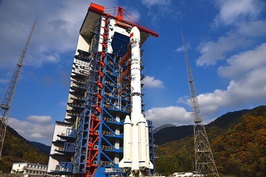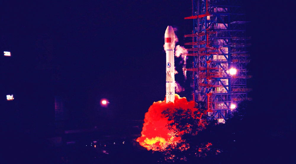 圖為本次任務(wù)中長三乙火箭托舉天鏈二號02星劍指蒼穹。