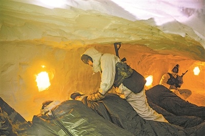 圖①:拉練途中,該旅官兵在雪洞里宿營。高翔昊 攝