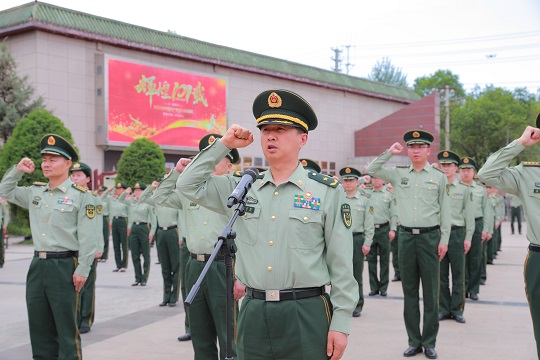本報(bào)訊 記者廉穎婷 通訊員郭紫陽(yáng) 段雪冰 7月1日,武警青海總隊(duì)黨委機(jī)關(guān)組織全體黨員赴中國(guó)工農(nóng)紅軍西路軍紀(jì)念館開展“守初心擔(dān)使命,迎盛會(huì)作表率”主題黨日活動(dòng)。百余名黨員官兵肅然而立,在總隊(duì)少將政治委員楊志強(qiáng)帶領(lǐng)下莊嚴(yán)宣誓。