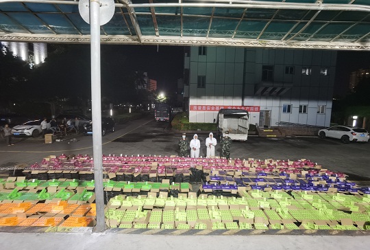 針對臺風(fēng)“暹芭”剛過境,走私分子可能會心存僥幸利用較低潮位從事走私活動的現(xiàn)實(shí)情況,該局科學(xué)研判,嚴(yán)密部署執(zhí)法力量加強(qiáng)轄區(qū)管控。7月6日晚23時許,在轄區(qū)海域蹲守的海警執(zhí)法員發(fā)現(xiàn)有不明“大飛”蹤跡,經(jīng)過圍追堵截最終將涉嫌走私“大飛”一舉抓獲,現(xiàn)場抓獲涉案嫌疑人兩名,查獲涉嫌走私香煙一批,該船后置5臺“雅馬哈”機(jī)頭,總馬力超1000匹。經(jīng)合浦縣疾控中心對上述涉案物品及人員進(jìn)行消殺、核酸檢測,結(jié)果均為陰性。經(jīng)清點(diǎn),查獲美國“百樂”牌香煙約400件,共計1.9萬余條,總案值約500萬元。目前,該案件正在進(jìn)一步深挖擴(kuò)線中。