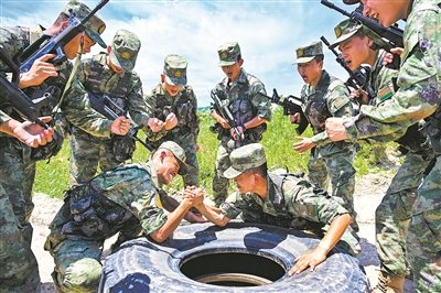 圖①:兄弟二人在戰(zhàn)友吶喊聲中進(jìn)行小比拼。圖②:訓(xùn)練結(jié)束后,兄弟倆經(jīng)常交流心得。鄧居山 吳昊宇 攝影報道