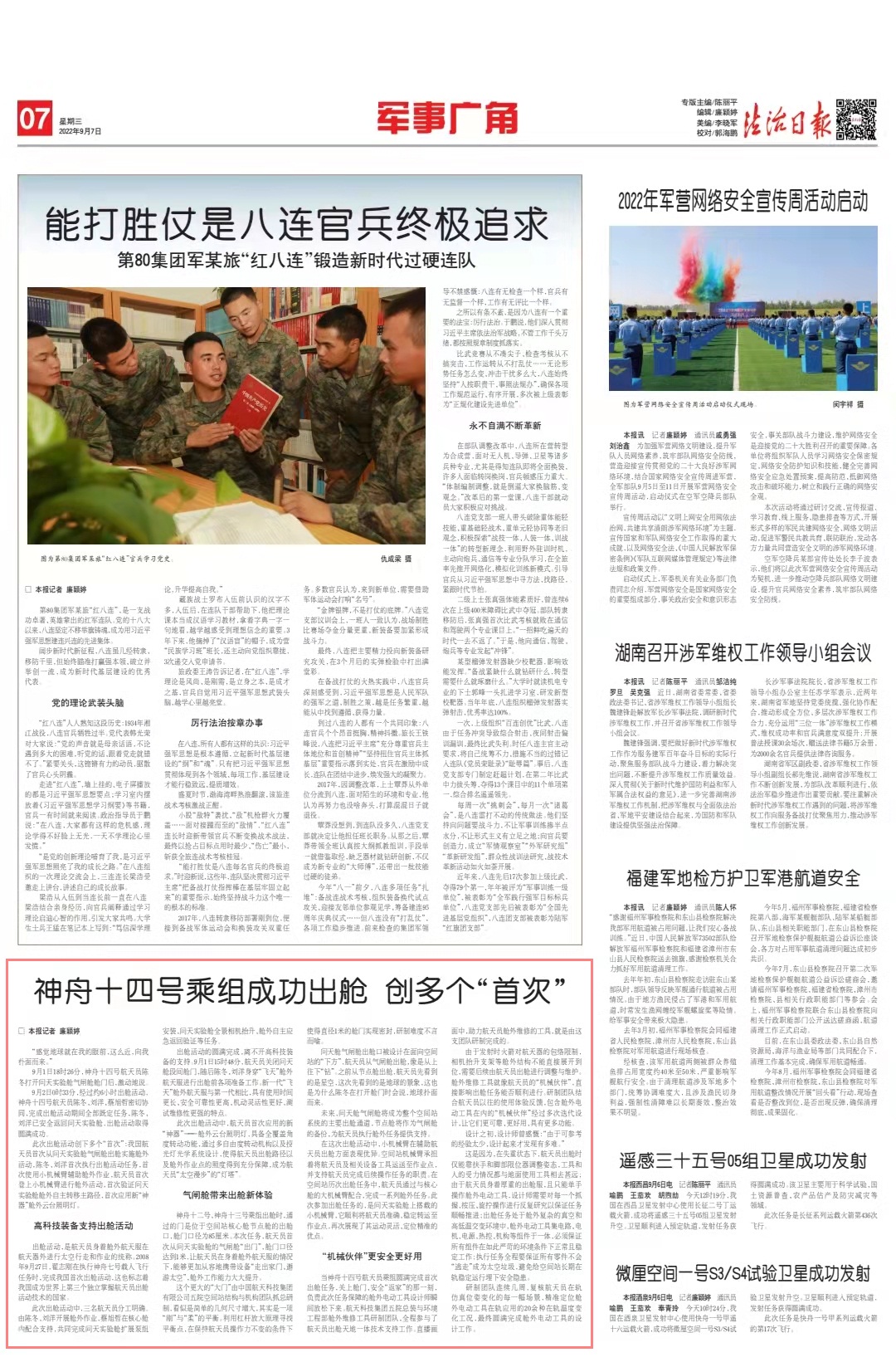 9月2日0時33分,經(jīng)過約6小時出艙活動,神舟十四號航天員陳冬、劉洋、蔡旭哲密切協(xié)同,完成出艙活動期間全部既定任務(wù),陳冬、劉洋已安全返回問天實驗艙,出艙活動取得圓滿成功。