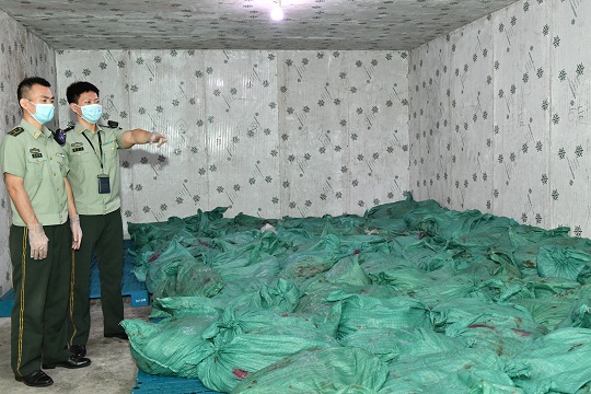 今年以來,海南檳榔種植業(yè)大幅減產(chǎn),鮮檳榔果價格持續(xù)飆升。該團伙為牟取暴利,通過利用快艇海上轉(zhuǎn)運和貨車夾藏攜運的方式將境外鮮檳榔果從海、陸兩個方向轉(zhuǎn)運入瓊。近日,經(jīng)過分析研究和偵查,海南海警局執(zhí)法人員在全面摸清犯罪鏈條且抓捕時機成熟后,聯(lián)合海南省公安廳、??诤jP緝私局、湛江市公安局、昆明海關緝私局等部門在瓊、粵、桂、滇四省統(tǒng)一開展收網(wǎng)行動。各部門周密配合、協(xié)同作戰(zhàn)、海陸聯(lián)動,一舉斬斷了5個鮮檳榔果走私鏈條,查證涉案走私新鮮檳榔果360余噸。此案為海南海警局成立以來經(jīng)辦涉案走私鮮檳榔數(shù)量最大的一宗案件。