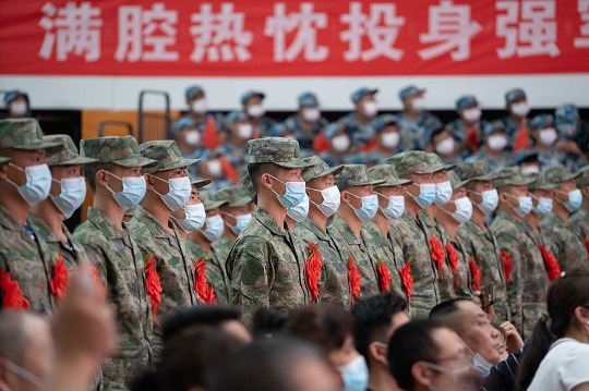 圖為新兵出征。