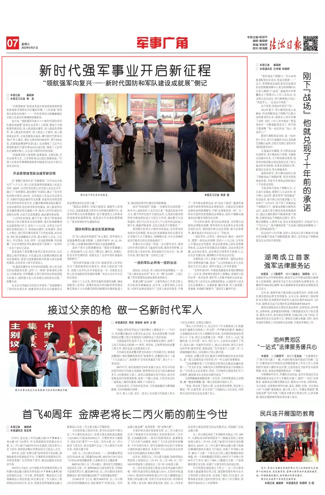 一流的軍隊(duì),必然有一流的法治;建設(shè)一流的軍隊(duì),需要一流的法治保障。黨的十八大以來(lái),全軍深入開(kāi)展法治宣傳教育,把法治教育納入部隊(duì)思想教育體系;以法治軍營(yíng)創(chuàng)建活動(dòng)為載體,在法治理念傳播、法治知識(shí)普及、法治理論引領(lǐng)等多方面著力,讓官兵在耳濡目染、潛移默化中形成法治自覺(jué)。