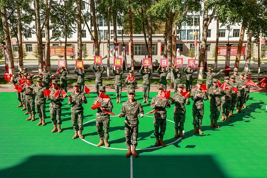 國(guó)慶前夕,武警青海總隊(duì)開(kāi)展“向祖國(guó)深情告白”主題活動(dòng),官兵們通過(guò)與國(guó)旗合影、組織升旗儀式等形式,向偉大祖國(guó)深情告白,祝福偉大祖國(guó)繁榮昌盛。圖為官兵揮舞國(guó)旗喜迎國(guó)慶。