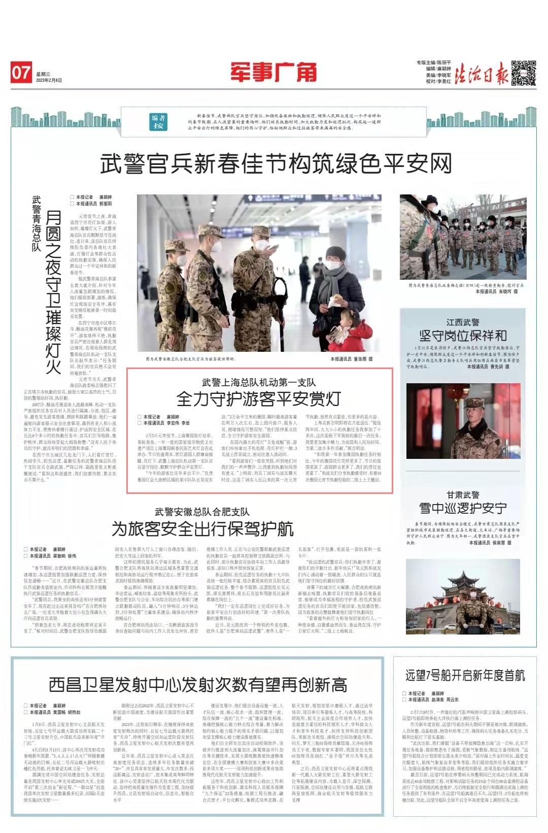 “和我第一年參加豫園執(zhí)勤任務(wù)時相比,今年的豫園花燈花樣更多了,節(jié)日的氛圍更濃了,游園群眾更多了,我們的責(zé)任也更重了?!焙蛻?zhàn)友們分享執(zhí)勤感受時,有著10次豫園元宵節(jié)執(zhí)勤經(jīng)驗的二級上士王健說。