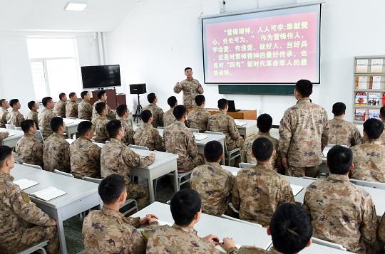 圖為第79集團(tuán)軍某旅“雷鋒連”指導(dǎo)員侯偉為連隊官兵上專題黨課。張永進(jìn) 攝