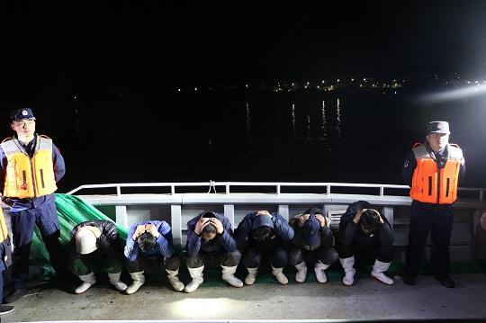 行動(dòng)期間,各單位重點(diǎn)加強(qiáng)渤??谖r蛄專項(xiàng)捕撈海域、中朝間海域、涉朝韓敏感水域、中韓暫定措施水域等重點(diǎn)方向監(jiān)管,集中打擊擅自變更作業(yè)場(chǎng)所捕撈漁船、涉漁“三無(wú)”船舶、非法入韓作業(yè)漁船,綜合運(yùn)用“科技管海”執(zhí)法模式開(kāi)展掃海行動(dòng),海警直升機(jī)同步開(kāi)展空中巡查,艦機(jī)協(xié)同??找惑w執(zhí)法,見(jiàn)警率、登檢率、查處率顯著提高。同時(shí),各級(jí)海警機(jī)構(gòu)強(qiáng)化與漁政、公安、市場(chǎng)監(jiān)管等部門(mén)配合協(xié)作,健全完善信息通報(bào)、工作會(huì)商、聯(lián)合辦案等工作機(jī)制,形成全鏈條打擊、海陸聯(lián)動(dòng)、一體執(zhí)勤新格局。