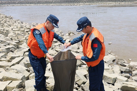 在日常轄區(qū)巡邏時,上海海警局執(zhí)法員持續(xù)發(fā)揮“海洋凈化小分隊”作用,主動為海洋“清潔”,對附近航道內(nèi)及海岸堤壩上的各類垃圾進(jìn)行清理。