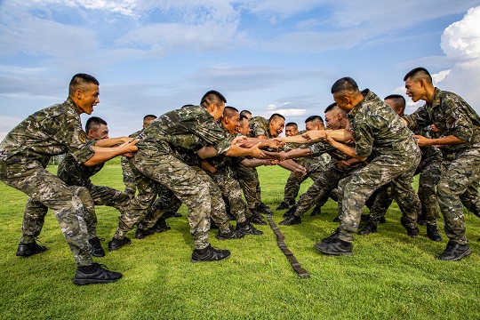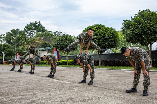 圖為武警官兵開展“跳山羊”活動。
