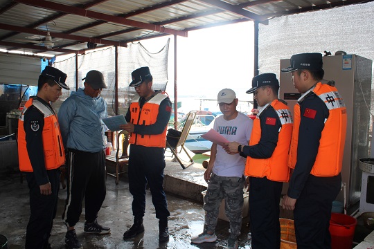 在做好海警營區(qū)和執(zhí)法艦艇防臺工作的基礎(chǔ)上,該局執(zhí)法員深入轄區(qū)碼頭開展安全檢查,幫助漁船民對漁排、船只加固纜繩、整理網(wǎng)具,檢查防臺防汛措施,消除各類安全隱患。巡邏艇同步出海巡查,通過廣播喊話、發(fā)放宣傳冊等方式進(jìn)行防臺宣傳,緊急勸返轄區(qū)漁民群眾撤離到陸地。