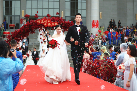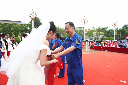 一項(xiàng)項(xiàng)儀式,將集體婚禮活動引向高潮。此次參加集體婚禮的航天工作者大多來自一線崗位,他們常年執(zhí)行高密度航天發(fā)射任務(wù),缺少時(shí)間與愛人團(tuán)聚,有的婚期更是一再推遲。中心為一對對新人搭建起盛大的舞臺,舉辦隆重的集體婚禮,讓祖國見證他們的幸福與榮光。