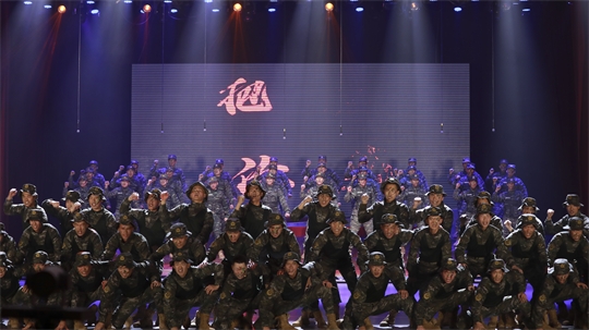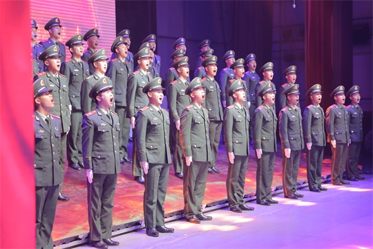 圖為武警青??傟?duì)海東支隊(duì)表演唱《我們從古田再出發(fā)》。