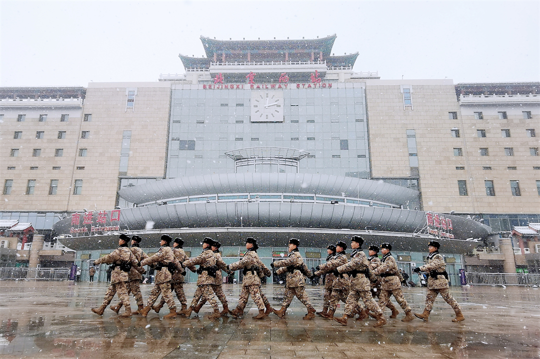 12月13日,北京市迎來強降雪和寒潮天氣,部分地區(qū)出現(xiàn)大到暴雪,對交通出行造成不同程度影響。武警北京總隊執(zhí)勤第六支隊加強與北京西站、豐臺站聯(lián)防聯(lián)動,及時調整勤務部署,確保旅客安全順利出行。
