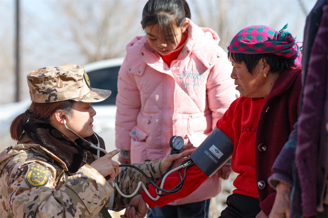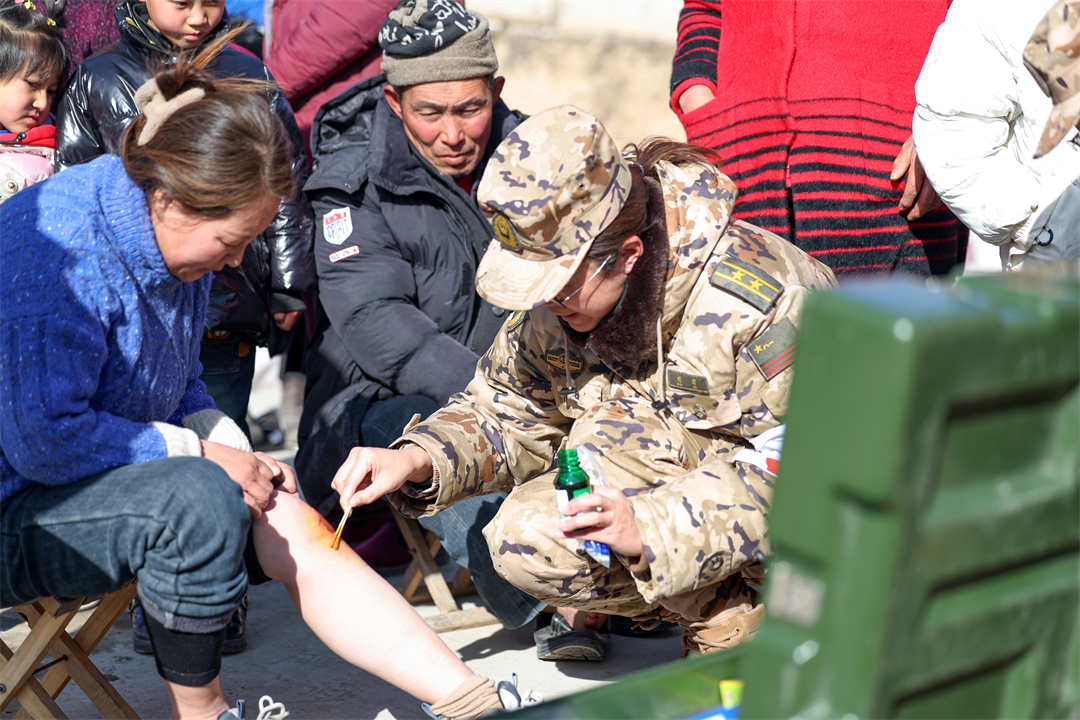 12月20日,武警甘肅總隊官兵在-15℃的天候下,不畏嚴寒、不懼艱險,為受災群眾開展醫(yī)療巡診、御寒物資發(fā)放、救災帳篷搭建等任務,讓災區(qū)受傷群眾倍覺溫暖。