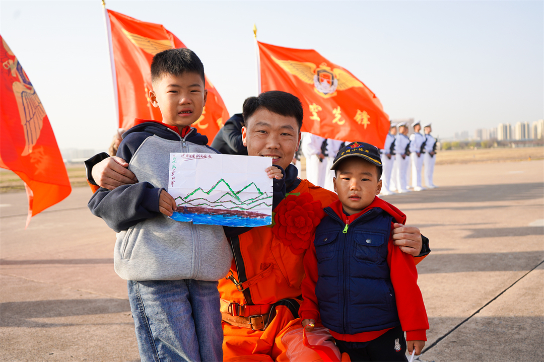 圖為今年3月30日,第42批護(hù)航任務(wù)歸建后,飛行員羅軍鋒與孩子合影的溫馨一幕。高翔 攝
