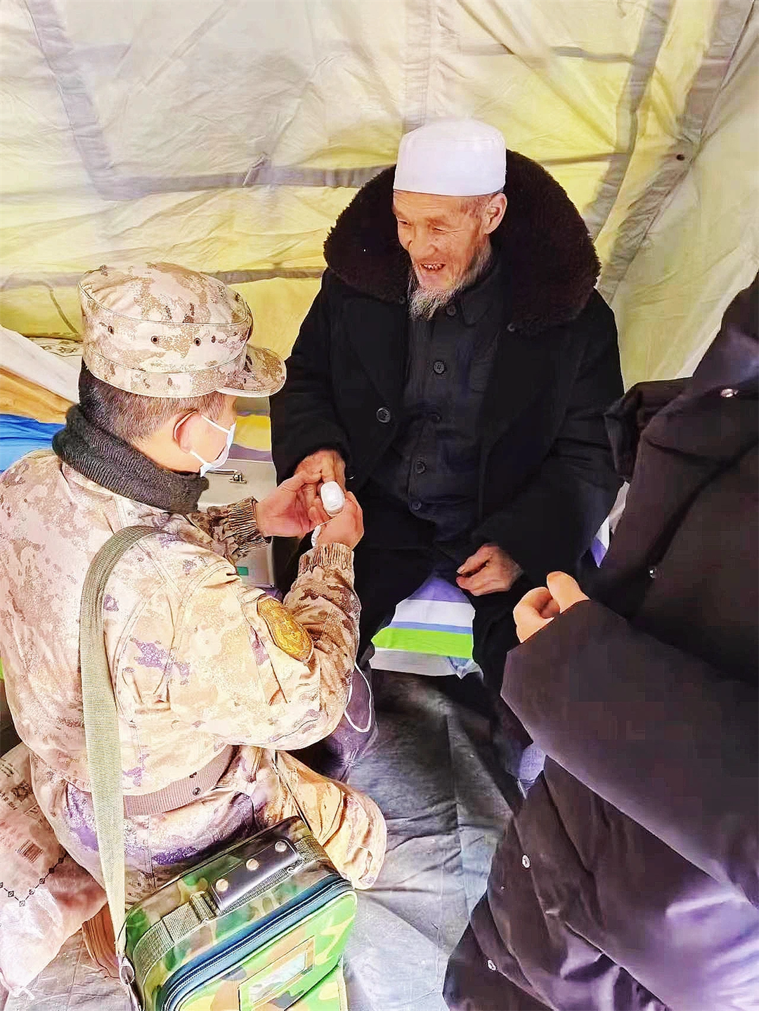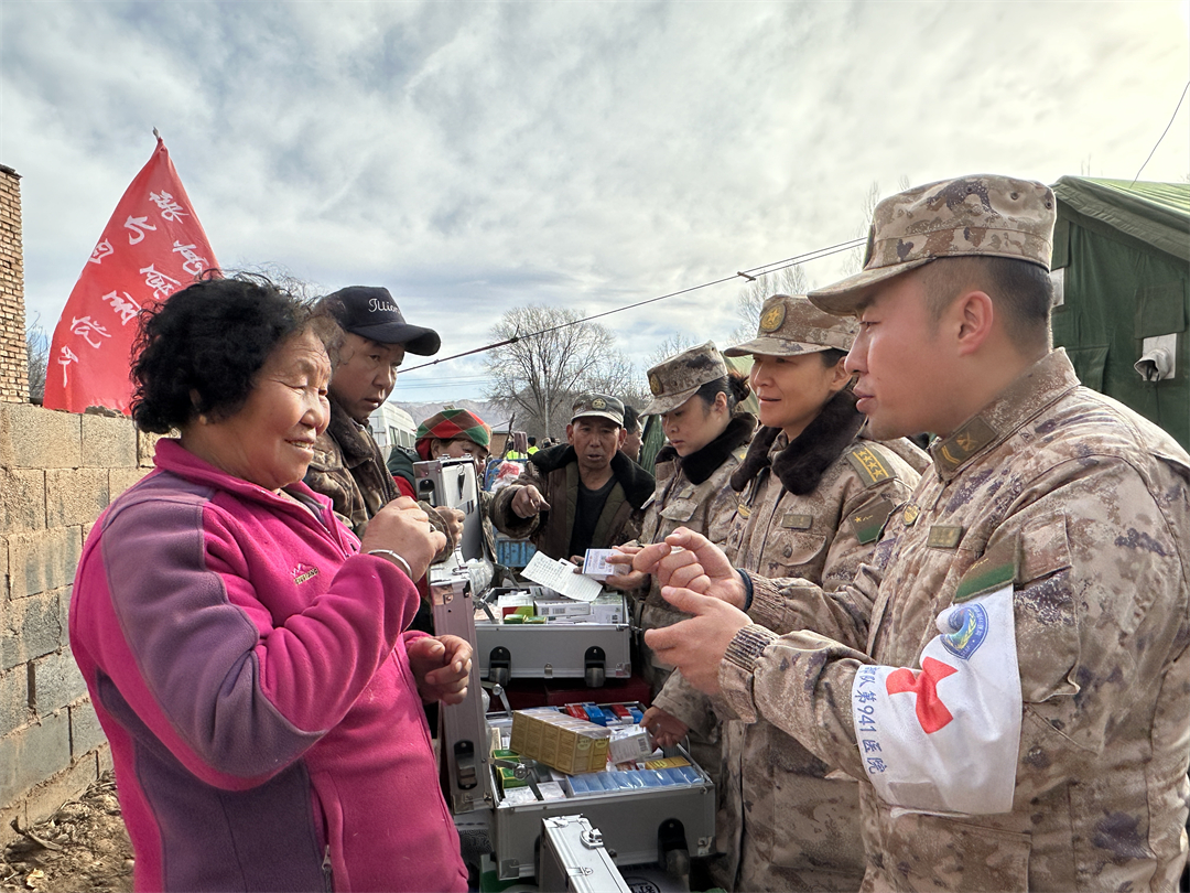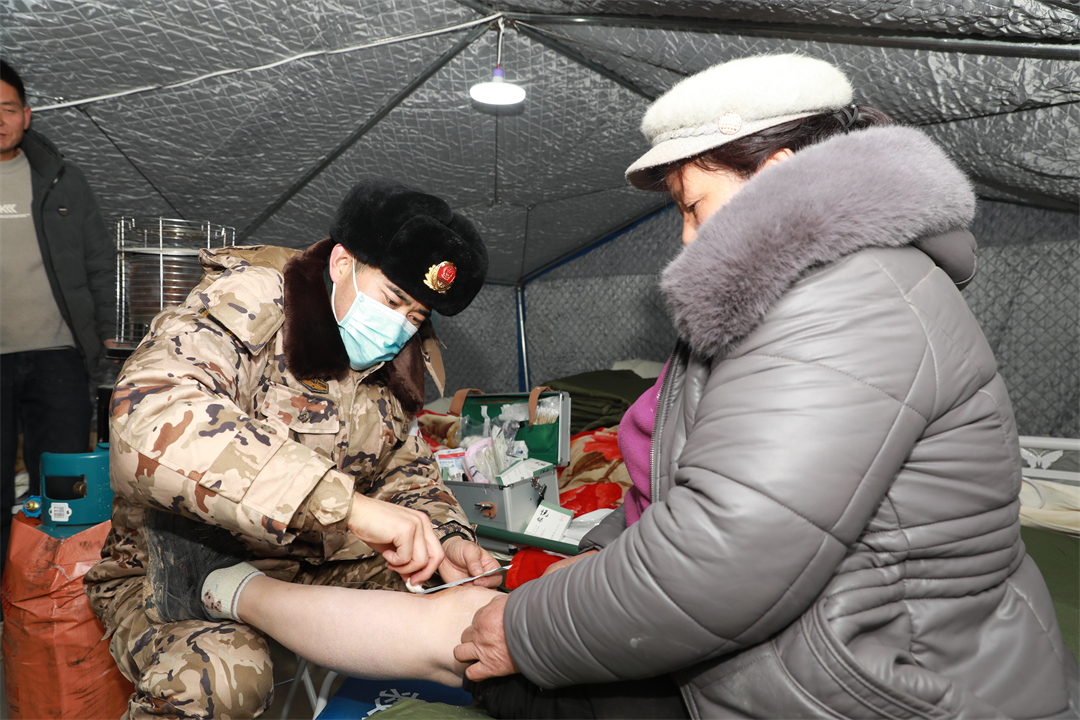 第940醫(yī)院醫(yī)療隊分赴積石山縣柳溝鄉(xiāng)、石塬鎮(zhèn)、劉集鄉(xiāng)和大河家鎮(zhèn),為受災(zāi)群眾查體診療、送醫(yī)送藥。他們還成立心理服務(wù)隊,在提供健康查體、送醫(yī)送藥等服務(wù)基礎(chǔ)上,為有需要的受災(zāi)群眾開展一對一心理疏導(dǎo)。為解決偏遠(yuǎn)村莊受災(zāi)群眾就診難的問題,應(yīng)急醫(yī)療分隊成立黨員先鋒模范醫(yī)療組,翻山越嶺、走村入戶,持續(xù)開展送醫(yī)送診服務(wù)。