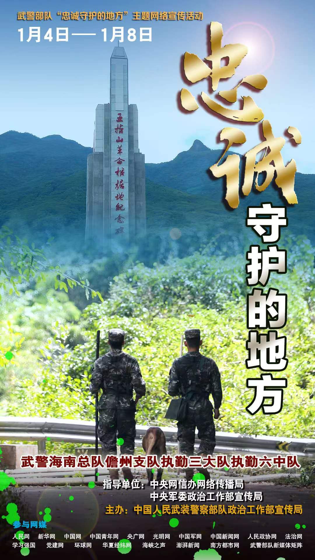 萬(wàn)家燈火有我守護(hù),平凡哨位書寫忠誠(chéng)。無(wú)論北疆雪原還是南域海島,無(wú)論繁華都市還是大漠荒灘,祖國(guó)各地到處都有武警官兵站哨執(zhí)勤的身影、到處都是他們忠誠(chéng)守護(hù)的地方。為真實(shí)反映新時(shí)代武警部隊(duì)忠誠(chéng)擔(dān)當(dāng)使命、守衛(wèi)社會(huì)安寧的堅(jiān)強(qiáng)決心和堅(jiān)定行動(dòng),立體展現(xiàn)“人民武警愛(ài)人民、人民武警為人民”的宗旨情懷,近期,在中央網(wǎng)信辦網(wǎng)絡(luò)傳播局和中央軍委政治工作部宣傳局指導(dǎo)下,武警部隊(duì)政治工作部宣傳局策劃組織了“忠誠(chéng)守護(hù)的地方”主題網(wǎng)絡(luò)宣傳活動(dòng),集中對(duì)武警遼寧總隊(duì)錦州支隊(duì)執(zhí)勤四大隊(duì)凌海中隊(duì)、廣西總隊(duì)桂林支隊(duì)執(zhí)勤四大隊(duì)陽(yáng)朔中隊(duì)、海南總隊(duì)儋州支隊(duì)執(zhí)勤三大隊(duì)執(zhí)勤六中隊(duì)、陜西總隊(duì)銅川支隊(duì)執(zhí)勤一大隊(duì)等4個(gè)先進(jìn)基層單位,進(jìn)行面對(duì)面采訪和網(wǎng)絡(luò)化報(bào)道。